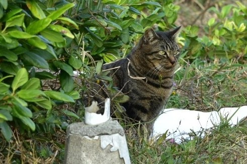 堤防をジッと見据えているニャンコ(=^・^=)(=^・^=)